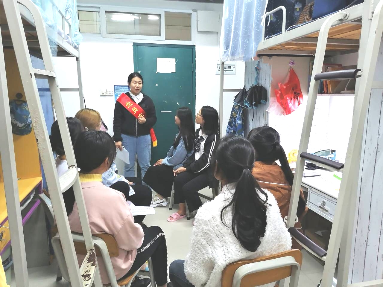 随后,在走访过程中,学生党员与新生亲切交流,普及校园安全知识并提醒大家要加强安全防范意识,遵守校纪校规,并对新生提出的学习生活方面的问题进行了耐心地解答。走访期间2020级新生曾静娱向学生党员杨宁同志询问如何学好学业学习,杨宁同志积极分享了专业课学习经验、学习方法,同时鼓励他们要养成良好的学习习惯,合理安排时间,树立正确的思想观念,积极参与专业实践。