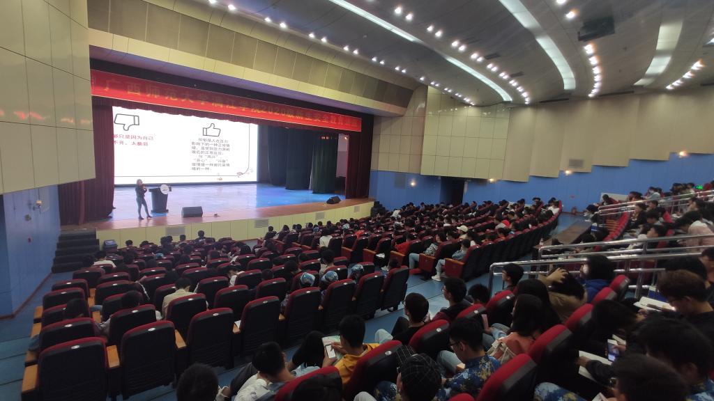 随后,由漓江学院大学生心理健康教育中心刘莹老师作心理健康教育讲座。刘老师指出当下一部分大学生存在着一些负面情绪,比如“抑郁”,“烦躁”和“焦虑”等,她告诉新生如何释放负面情绪的方式方法,进一步提高了他们对心理学知识的学习和运用。刘老师强调,当今社会正处于急剧变革的时期,各种新问题不断出现,大学生承受着成长、成才和就业等诸多压力,面临着生理、心理、社会等多方面的现实问题,容易产生各种心理困惑,需要学会及时调整好自己的心态。