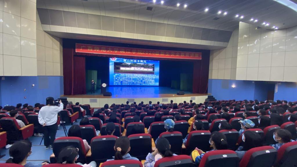 首先,由桂林市公安局雁山分局的赵俍杰警官为新生介绍安全教育方面的知识,赵警官主要围绕“人身安全”和“财产安全”两个方面的问题介绍当前学生遇到的安全问题。赵俍杰警官用雁山高校真实案例告诫新生要懂得保护自己,增强自己的防诈骗意识。他指出大学生活应做到以下几个方面,一是学习知识,掌握一些必备的技能和方法;二是调整身心,强健自己的体魄;三是构建社交关系的雏型,结交一些终身受益的师生和朋友。