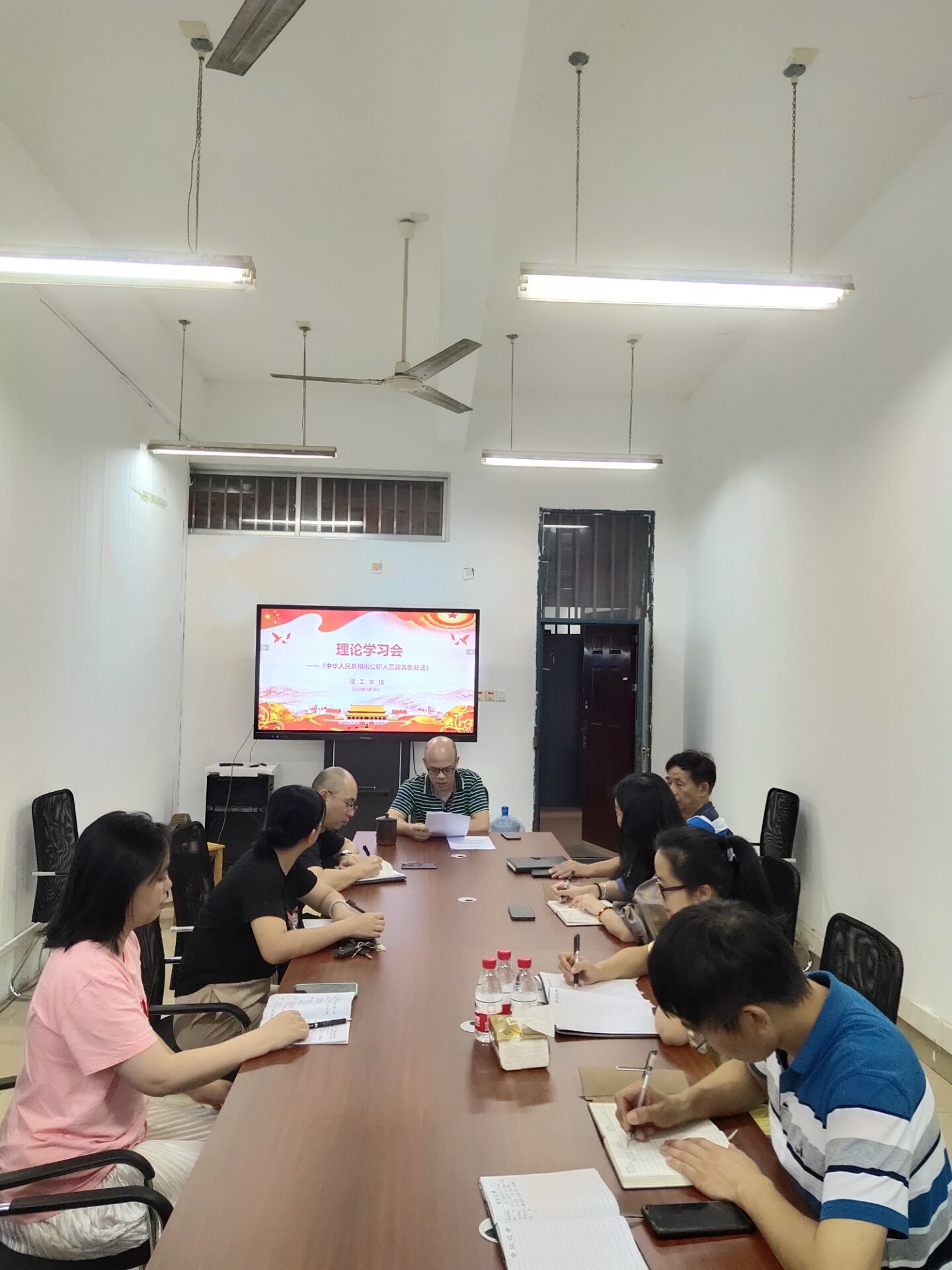 7月16日下午,理工学院党总支理论中心组(扩大)召开学习会议,学习《中华人民共和国公职人员政务处分法》,并进行了交流发言。会议由理工学院党总支书记谢国榕主持并领学,理工学院领导班子、辅导员及所有行政人员参加会议。