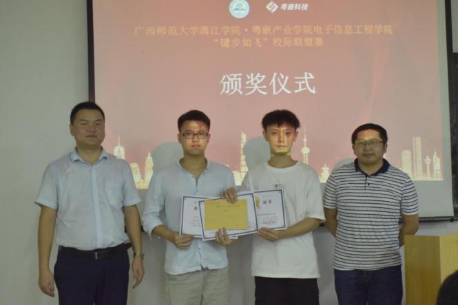 6月18日,理工学院/粤嵌电子工程学院电子信息工程专业粤嵌杯“键步如飞”IT技能实践大赛总决赛颁奖仪式在至善楼1502教室召开,我院共有2个队参加粤嵌杯“键步如飞”IT技能大赛总决赛,并获得总决赛二等奖1项和三等奖一项的好成绩。出席本次颁奖仪式的嘉宾有学院副院长刘亮龙、电子信息工程教研室主任朱新波、粤嵌广西分公司总经理岳汶华先生以及粤嵌公司电子事业部副总监万光海先生。