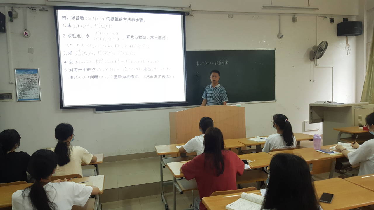 本次公开课由赵强副教授主讲,内容选自《微积分2》的“二元函数的极值”,授课对象为2019级审计学专业学生。赵强老师采用类比的方式进行教学,对于二元函数极值的概念、判定及应用的教学,让其与一元函数的极值进行类比,讲解通俗易懂,深受学生欢迎。特别是针对学生平时作业经常出现偏导数求解错误的地方,更是精心设计,使学生较为直观地理解自己出错的原因。整个课堂,逻辑清晰,时间安排合理,课堂教学气氛活跃,为青年教师的教学起到引领示范作用。