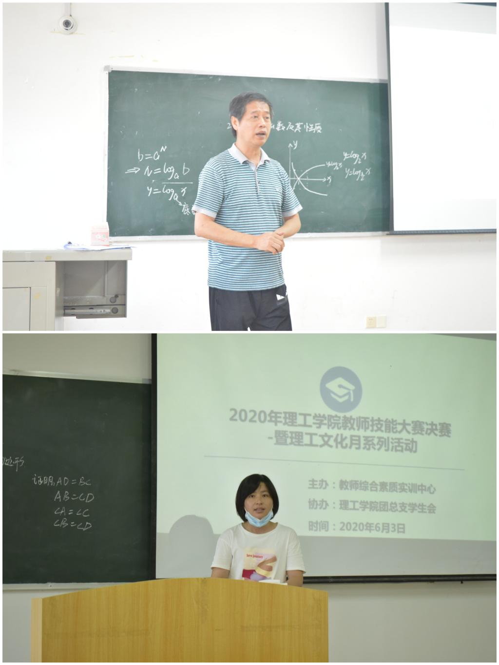 为适应新时代对师范生专业基本功的新要求,提高我院师范生教学技能水平,理工学院数学教育教研室于6月3日下午在至善楼1408、1409教室举办第四届师范生教学技能大赛决赛。参加本次活动的嘉宾有桂林市第十一中学优秀教师金蝉先,理工学院数学教育教研室主任郑桂丹、高等数学教研室主任吴小莉、赵强副教授、沈阳、秦丽珍。