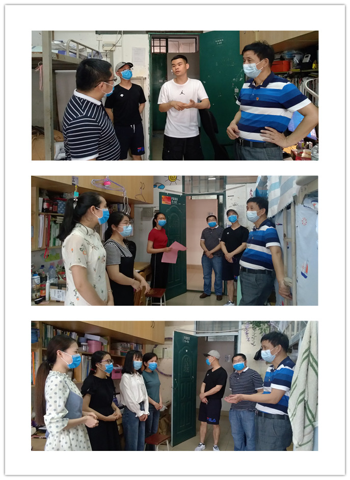 院长林庆南、副院长刘亮龙、党总支副书记兼毕业年级辅导员金云亮两天全程在核验点迎接学生,5月7日傍晚,林庆南、刘亮龙、金云亮一行三人到学生宿舍亲切看望慰问返校学生,询问他们返校后生活、学习、论文答辩准备情况等,就同学们加强自我防护、注意公共卫生等进行指导,同时告知学生要严格执行校园实行封闭管理的要求,绝对不允许随便出入校园。