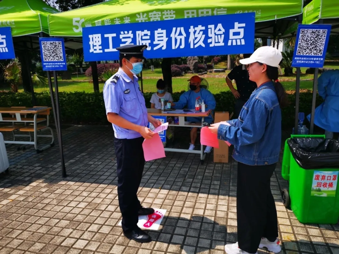 5月6日—7日,理工学院雁山校区毕业年级两天共170余名学生返校,学生通过预约专线公交、网约车等方式回到学校,部分学生则乘坐私家到校。学生到校后经过一系列消毒、体温检测、验证健康码后到来到各学院身份核验点,由辅导员进行身份核验、发放口罩,然后才能前往宿舍,进入宿舍前还需再次进行体温检测。