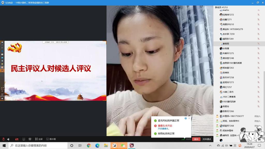 各团支书在开展团支部“入党推优”大会前积极做好前期准备工作,召开支部委员会,与班团干讨论会议内容并合理分工,以便会议的顺利开展。各团支部于4月22日至4月28日陆续开展线上“入党推优”大会。