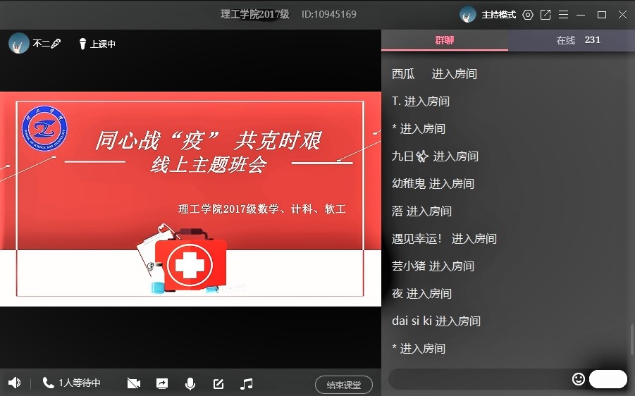 为做好疫情防控的宣传教育工作,提高学生自主防范意识和主动上报意识,及时了解学生的身体与线上学习情况。理工学院2017级数学、计科、软工于3月8日晚上利用QQ群课堂召开了“同心战‘疫’,共克时艰”线上主题班会。会议由辅导员蒋倩主持。