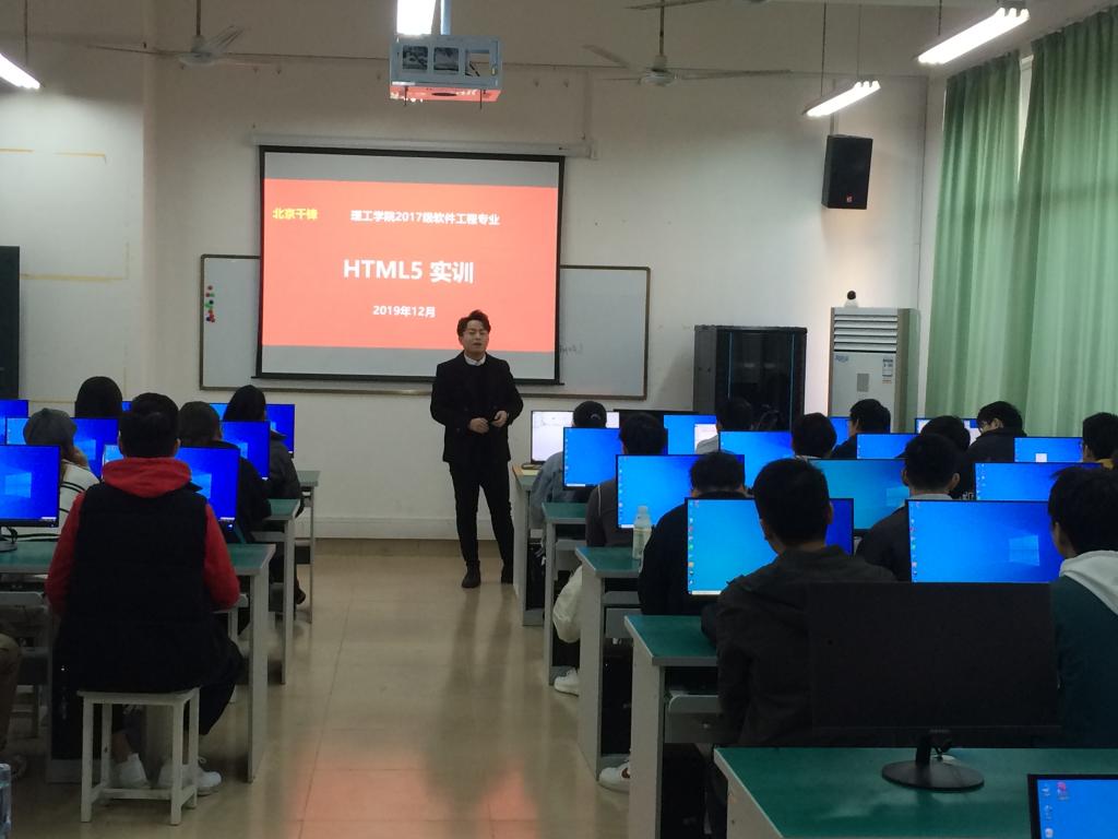 2019年12月11日至15日,理工学院联合北京千锋互联科技有限公司对2017级软件工程专业的同学进行HTML5前端技术实训。此次实训由千锋公司资深工程师授课,通过项目实战,将理论知识转化为实战能力,提高学生的动手能力;通过小组合作,培养团队协作开发能力,体验企业团队开发模式,在实训过程中,学习企业的新技术,了解新技术的发展动态。