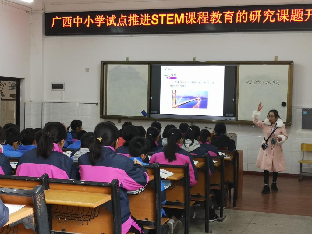 实习生王继纯以公开课的形式向我院领导、西城中学的领导和老师上了一堂汇报课,所讲授内容是初中一年级数学《线段、射线、直线》。在教学过程中,她从学生熟悉的生活实例出发,引导学生从图片中观察出线段、射线和直线,用数学的方法对其进行研究,先对其进行定义,再用数学符号表示,最后在实际问题中进行应用。整节课采用合作教学和讲练结合的教学模式突破教学重难点,学生积极回答老师的提问,教学效果较好。