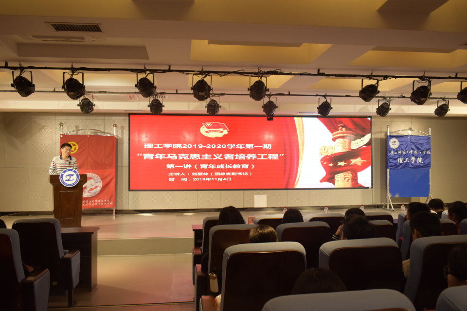 为认真落实关于青年马克思主义者培养工程的基层工作,不断提高大学生骨干、团干部、青年知识分子等青年群体的思想政治素质、政策理论水平、创新能力、实践能力和组织协调能力,11月4日晚上,理工学院团总支学生会在至善讲堂举办了2019-2020学年第一期青马班开班仪式暨理论授课第一讲活动。参加活动的有学院党总支书记谢国榕、副书记金云亮,团总支书记李莉、副书记刘显林,学生考评干部以及第一期青马班的全体成员。本次青马班开班开班仪式由2019级计算机类专业学生马小伟主持。