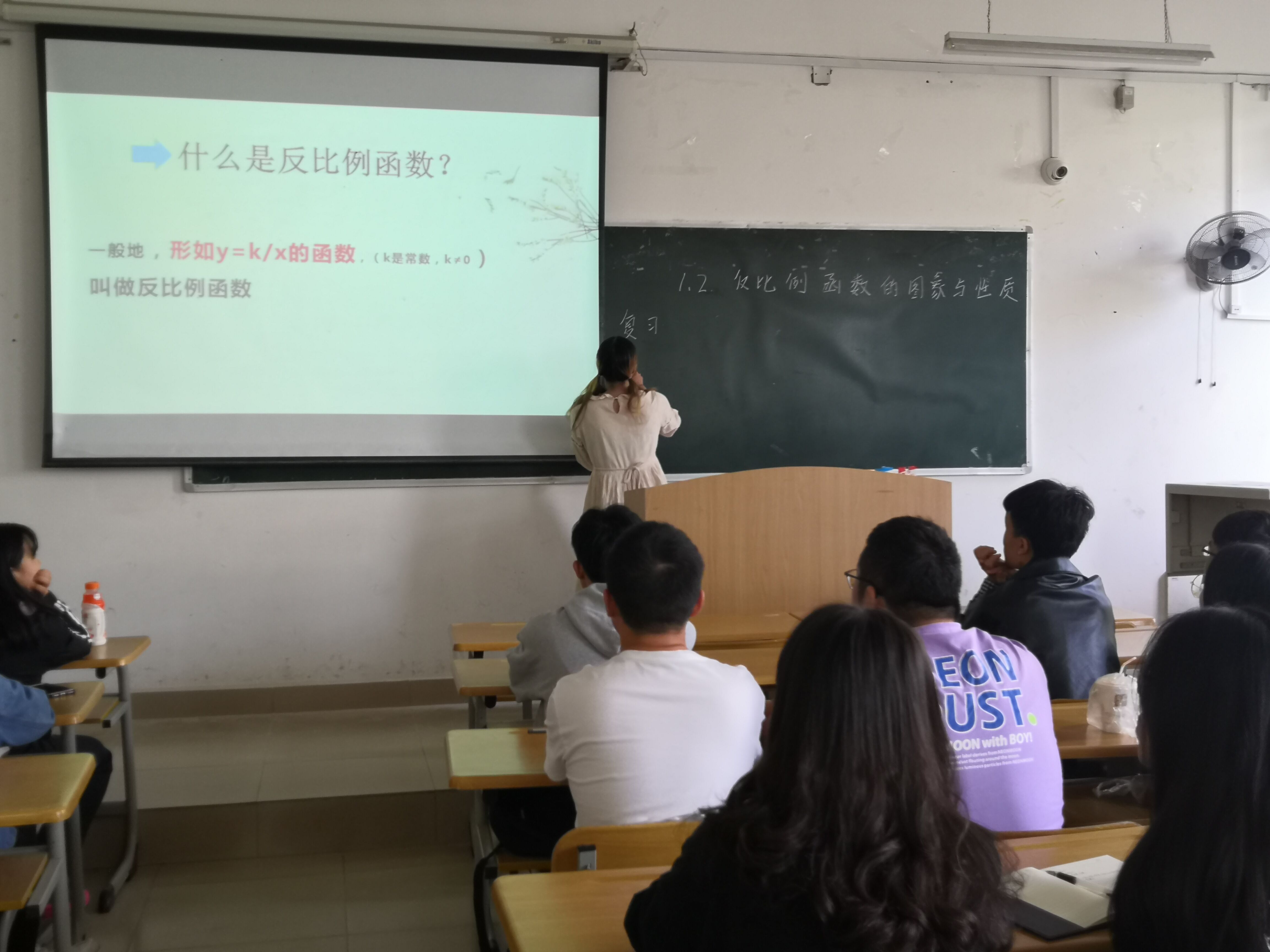 为了使同学们深入理解和认知如何教学,刘翔老师在开讲之前进行了充分准备,他选择了《反比例函数的图象与性质()》这一课题,并选派两组学生提前一周备课。在备课过程中,由我院教师郑桂丹进行指导。讲座中,刘老师对备课的环节、策略等理论知识进行讲解,再由两组同学进行“同课异构”,同时进行模拟说课。然后,再针对模拟授课环节,与听课的同学们一起评课。最后,通过对模拟授课环节的剖析,就“如何备课”进行理论到实践的分析与总结。