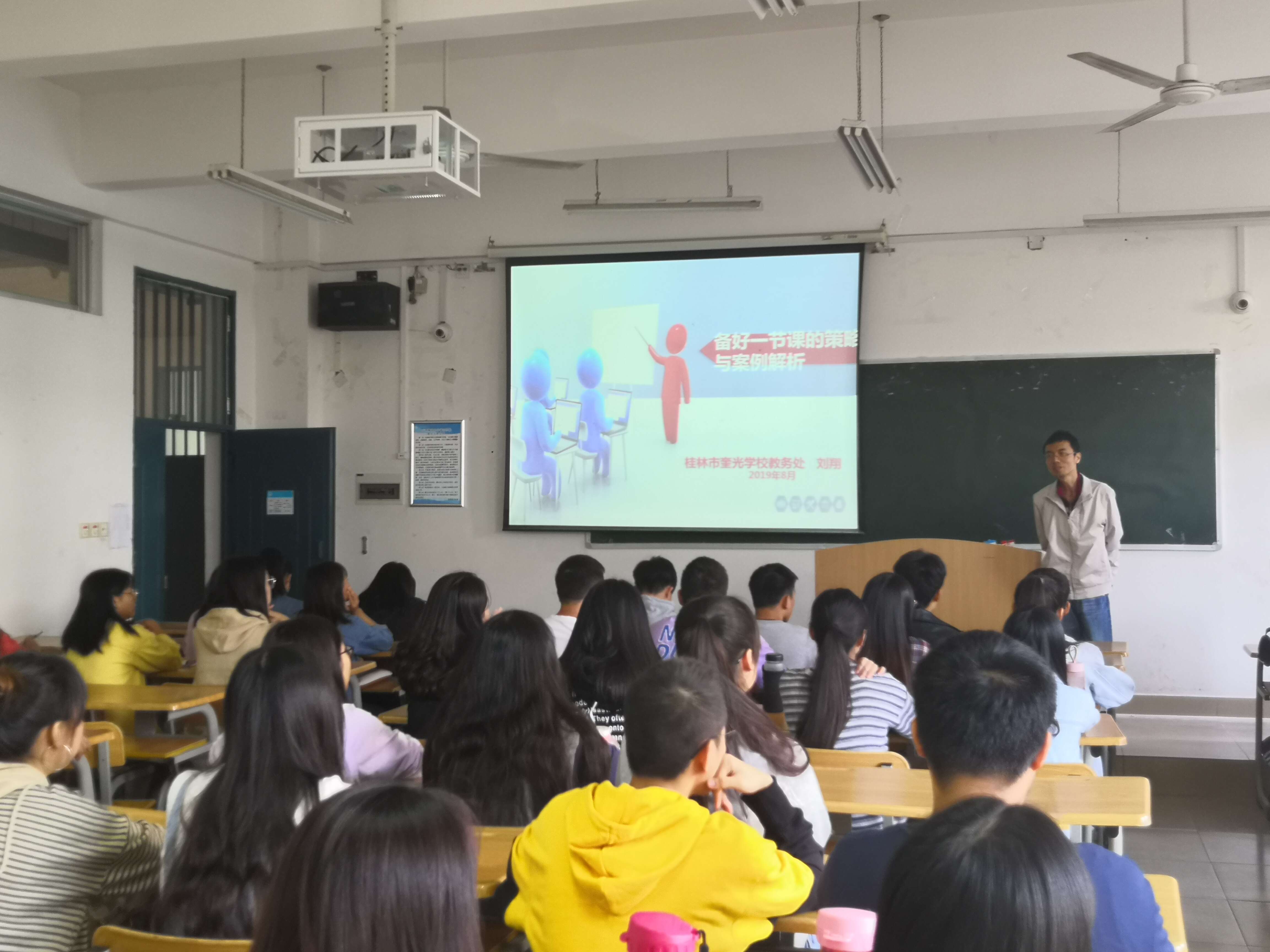 10月19日上午,理工学院的“中学名师讲坛”开讲啦。本次讲座由桂林市奎光中学教务处副主任刘翔主讲。他以“如何备好一节数学课”为主题,为2017级数学与应用数学专业的100多名学生带来了一次充实、精彩的讲座。