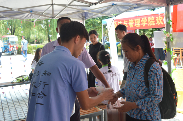 学院领导林庆南、谢国榕、金云亮在迎新大本营看望迎新的工作人员、新生及家长。报到处工作井然有序,工作人员热情地为来报到的新生及家长送上罗汉果茶,带领他们完成报到,帮助新生搬运行李。经过一天的忙碌,我院迎来了281名新同学,迎新工作也随之落下帷幕。