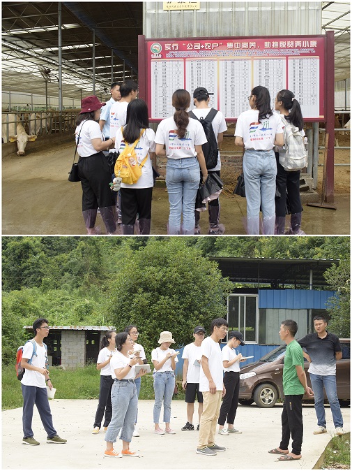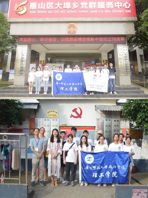 “40年的历程,40年的辉煌”团队在桂林市雁山区大埠乡开展以“改革开放四十年以来的变化”为主题的暑期社会实践“三下乡”活动。团队活动得到大埠乡政府工作人员和驻村书记的大力支持,他们带领成员实地调研大埠乡贫困山村在交通、教育、医疗、住房,产业等方面的发展变化。通过走访调研,到处可见“乡村振兴,产业发展”的宣传标语,大埠乡镇干部讲述了居民的住房改造和教育发展,先前的泥土房改建成现在的水泥房,乡村教育实现适龄儿童零失学率,偏远地区有校车接送。乡卫生院院长讲述乡镇医疗卫生发展,从最初的医护人员少,医药物资匮乏到现在基础医疗设施逐步完善,居民纳入医保等等。在走访贫困村黎家村时,村主任讲述了这些年的变化,他说“由于是山区,这里2006年才实现了全村用电,2016年才实现了村村通公路”,“要致富,先修路”,是大埠乡所有贫困村发展的必走之路,这些年黎家村的毛葡萄、金槐、柑橘种植业,竹鼠、蜂蜜养殖业得到了快速发展。随后,队员们还到大埠乡同盛生态养殖有限公司和陶家村的荷花基地进行调研,其中同盛生态养殖有限公司的“公司+农户”集中寄养或领养的方式,是帮助贫困户实现脱贫的亮点。陶家村打造以“美荷陶家”为特色的乡村旅游产业发展模式,形成了“荷美陶家”现代农业核心示范区,每年夏天都吸引游客10多万人。