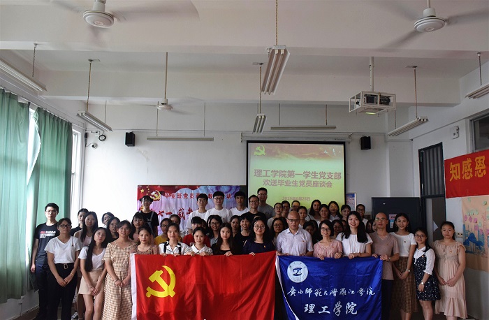 在毕业生即将告别母校之际,为贯彻落实“两学一做”,增强毕业生党员的集体荣誉感,促进毕业生党员与非毕业生党员之间的交流,理工学院第一学生党支部组织开展以“不忘初心,砥砺前行”为主题的毕业生党员教育系列活动。出席活动的有图书馆/档案馆馆长王忠、设计学院党总支书记张丽、党总支副书记陈玉婵、理工学院党总支书记谢国榕、党总支副书记金云亮、第一学生党支部书记贺娜以及相关师生代表。