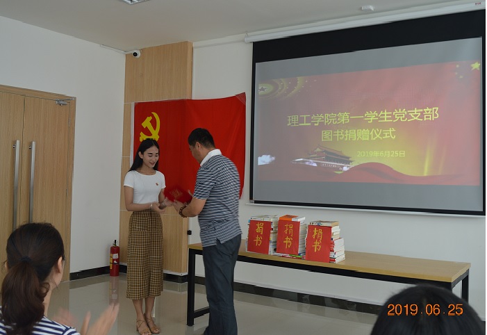 6月25日上午,支部在图书馆三楼阅览室开展“为母校添书,让爱心传递”捐赠图书活动,支部所有党员共捐赠图书55册,包括考研考证类、国内外名著类、工具书类等。每一本书的扉页都留下了党员们对母校真诚的感谢与由衷的祝愿。贺娜同志说明活动意义,启动捐赠仪式。王忠馆长为捐赠活动致辞,他感谢理工学院党员能继承捐赠图书,为图书馆的建设贡献力量,他表示,对于捐赠的图书会尽快加工、上架和同学们见面,同时也祝愿理工学院的毕业生党员前程似锦、工作顺利。
