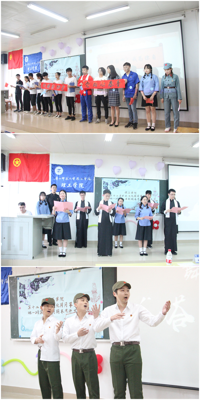 活动第二项为理工学院2018---2019学年第二学期团支部期末考评大会。由刘显林老师为本次团支部期末考评大会致辞,他希望广大团员青年牢记习近平总书记对新时代青年的六点要求,新时代中国青年要树立远大理想,要热爱伟大祖国,要担当时代责任,要勇于砥砺奋斗,要练就过硬本领,要锤炼品德修为。接着,各个团支部进行汇报展示,才艺节目深受现场观众喜爱,体现了团员青年的多才多艺。