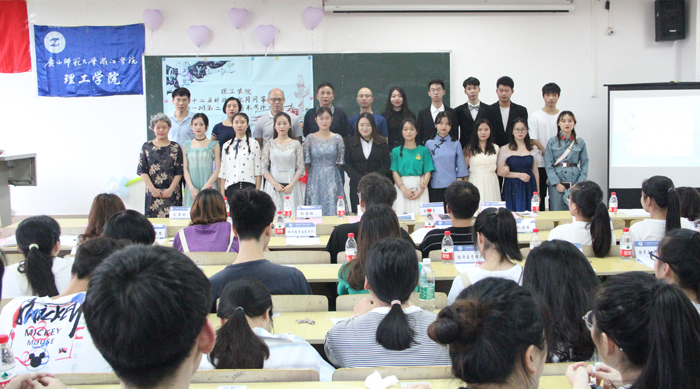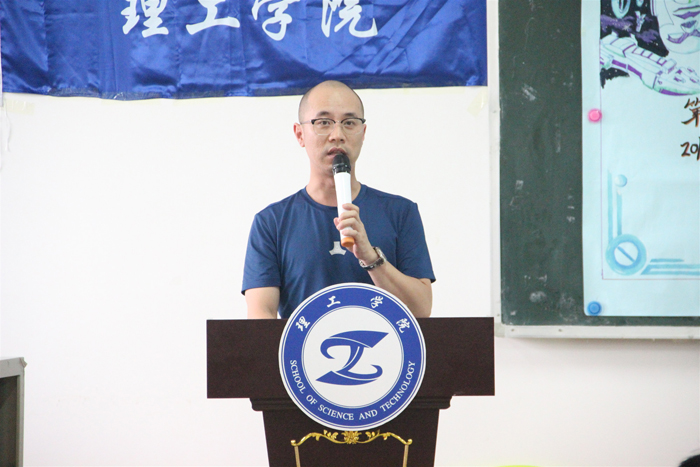 活动第一项为理工学院第十二届科技文化月闭幕式,谢国榕书记为活动致辞,他指出,本次文化月的圆满开展得益于老师、同学们的精心策划与细致部署,一是组织认真严密,工作扎实有效;二是宣传氛围浓厚,学生参与广泛;三是活动内容丰富,注重专业特色。同时,文化月还以培养应用型人才为目标,注重思想理论和实践活动相结合,重视大学生创新能力的培养,为大学生营造了良好的文化氛围,提供了一个施展才华、培养创新能力的机会。随后,师范生信息化教学应用大赛获奖代表王继纯同学上台展示教学成果,并和同学们分享了心得体会。