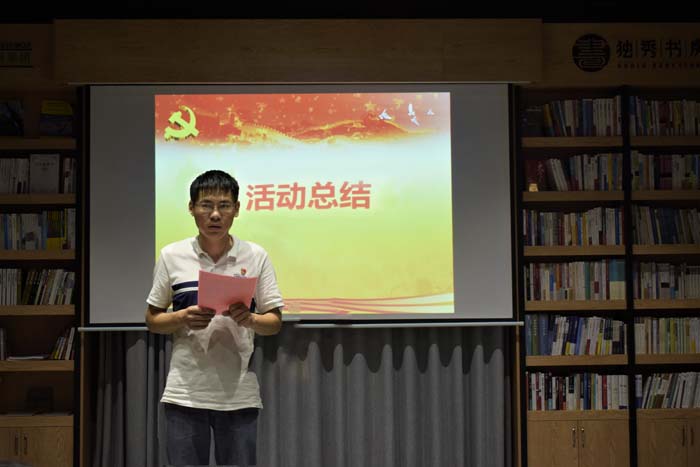 刘显林老师对参赛选手的精彩表现进行了点评,并为本次活动作总结。首先他肯定了本次活动的成功举办不仅让同学们在阅读中开阔了视野,增长了知识,而且进一步搭建了各部门学习与交流的平台,促进大家相互学习,更好的强化了党建带团建。同时,也指出了部分参赛者的不足之处,如表现不够自信,与观众眼神交流较少等等。最后,他希望同学们在今后的学习生活中能努力改善不足,不断完善自我,进一步深化阅读,并且提倡大家“读书好,好读书,读好书”。