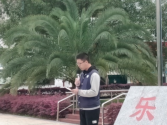 在微凉的春意中,英姿飒爽的国旗队护送鲜艳的五星红旗入场,国歌起,在场师生无一不对国旗行注目礼。2018级数学与应用数学专业陆昊健带领全体学生在国旗下进行庄严宣誓。接着,2016级信息管理与信息系统专业的马诗棋在国旗下以“爱国,是一种责任”为主题进行演讲,他表示,当中华民族在面对鸦片的毒害时,面对八国联军的残暴对待时,面对日本帝国主义犯下的滔天罪行以及不断地被侵略、被压迫和屠杀时,有多少民族英雄挺身而出,为祖国抛洒满腔热血。爱国不应只体现在血雨腥风的年代,更应体现在新时代的发展中,让爱国之情无处不在,让它浸润着我们生活中的每一个细节。从我做起,从现在做起,承担起自己爱国的责任。珍惜时间,刻苦学习,努力拼搏,将来为建设我们的祖国做出自己的贡献,真正承担起爱国的责任。