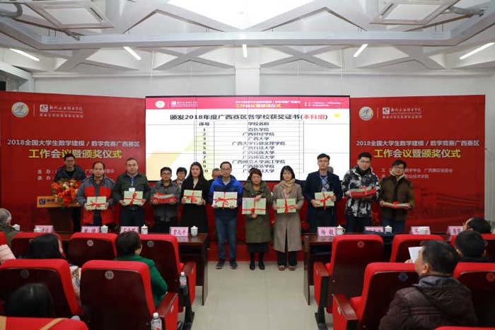 1月4日,理工学院吴小莉、张玉芳两位老师参加了2018年全国大学生数学建模竞赛广西赛区工作总结会议暨颁奖仪式,我院学生在2018年全国大学生数学建模竞赛中荣获广西赛区一等奖1项,二等奖3项,三等奖5项,成绩位列广西独立学院前矛。