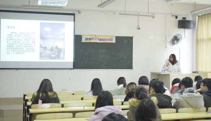 为了促进大学生就业创业,提升大学生就业创业能力,于12月29日上午在1210教室举行深圳思学佳教育2019校园招聘会,本次活动由学校学生事务部大学生就业中心主办,理工学院承办,其中2015级数学与应用数学全体学生参加了本次活动。