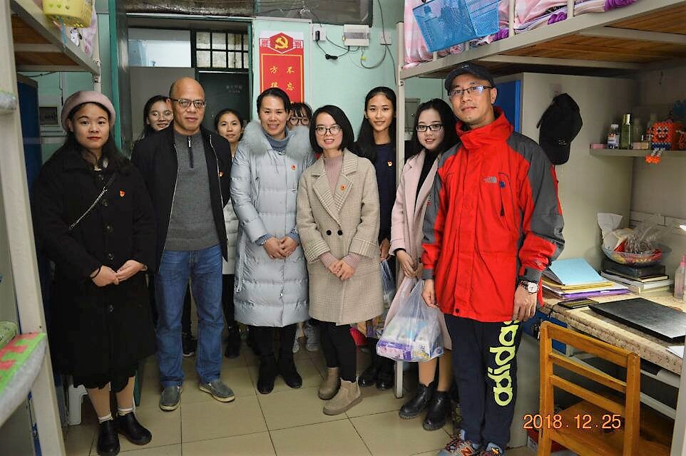 在2019年元旦前夕,为深入了解我院学生党员的生活状况及学习工作等情况,党政事务部副部长翟彦同志、理工学院党总支书记谢国榕同志、党总支副书记金云亮、第一学生党支部副书记贺娜同志深入党员宿舍,开展慰问困难党员活动,为这些党员们送去党组织的关怀与温暖,同时致以节日的问候。