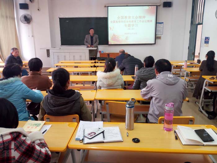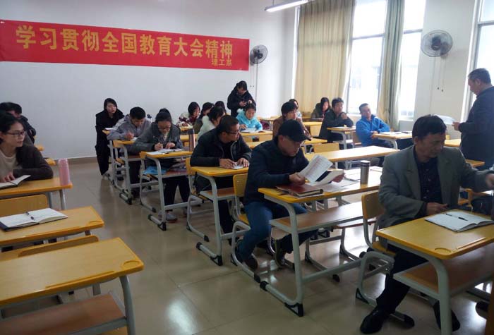 11月21日下午,理工系在2410教室召开贯彻落实全国教育大会、新时代全国高等学校本科教育工作会议精神专题会议。系领导班子林庆南、谢国榕、裴献、金云亮及全体教职工参加会议。