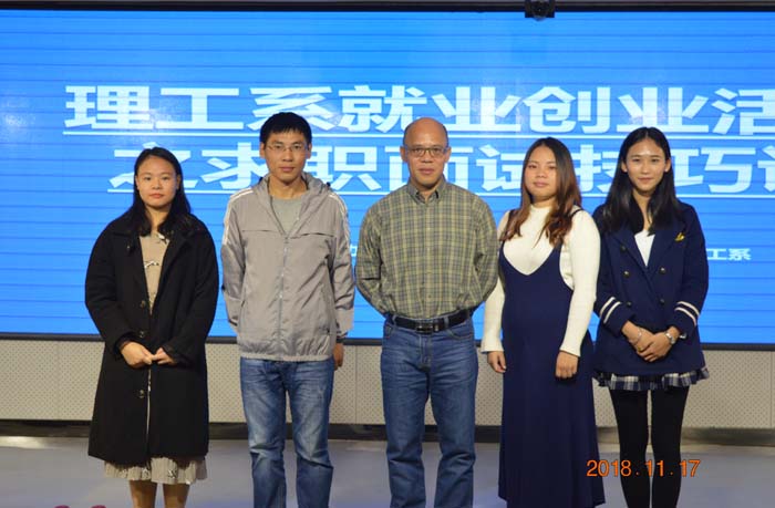 11月17日上午,由理工系举办的求职招聘技巧专题讲座在至善讲堂举行,旨在帮助毕业生解决求职过程中遇到的疑难问题,熟知面试流程,提高求职技能。活动特邀理工系党总支书记谢国榕,2018届优秀毕业生章婉清为我系2015级全体毕业生做讲座。2015级数学与应用数学、计算机科学与技术、信息管理与信息系统专业的毕业生参加讲座。
