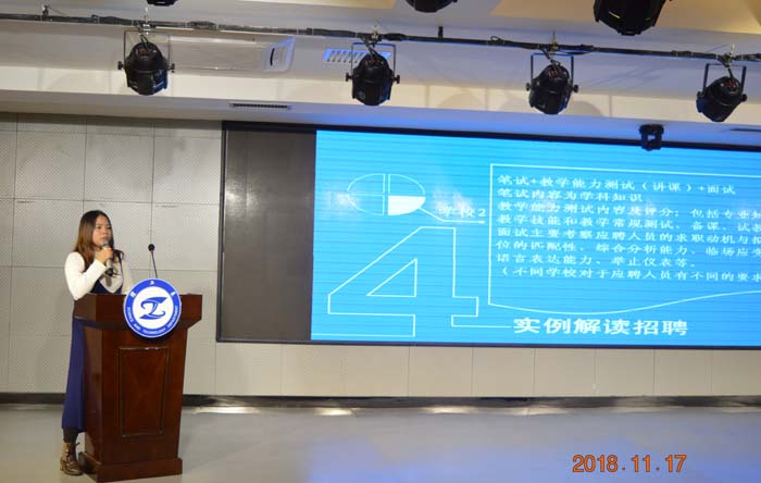 校友章婉清根据自己的求职经历,提醒毕业生要尽早规划个人求职,找准个人就业方向并进行准确定位,结合求职岗位,提高自己的各项能力;同时她针对数学专业在“教育机构”和“全日制学校”的求职过程中,重点讲述两种不同的面试流程。最后强调成功求职必须做到周全准备、礼貌礼仪、良好心态、机会机遇。