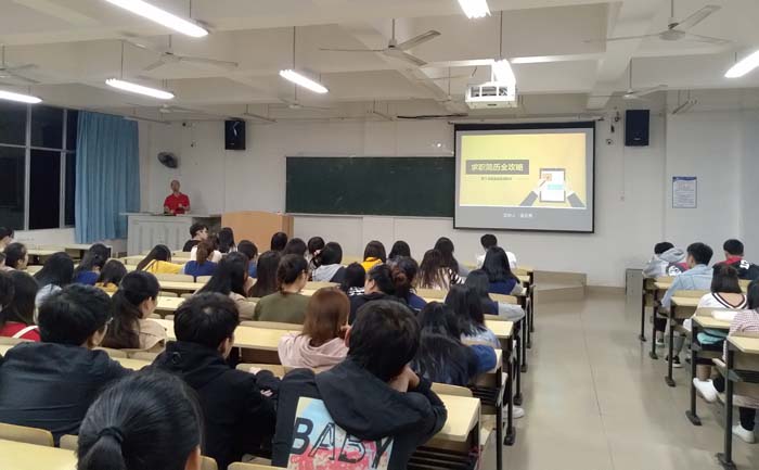 金云亮以往届毕业生简历作品为例,生动形象地为我们讲解了“简历的重要性”、“简历制作原则”、“简历的基本要素”以及“投递简历的注意事项”等。他强调,简历是用来推销自己的,是求职者全面素质和能力的体现,可以反映一个人是否务实,反映一个人的语言组织能力 、信息筛选能力等,一份良好的个人简历对于获得面试机会至关重要。