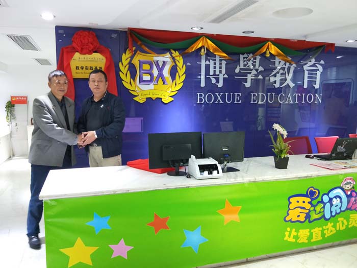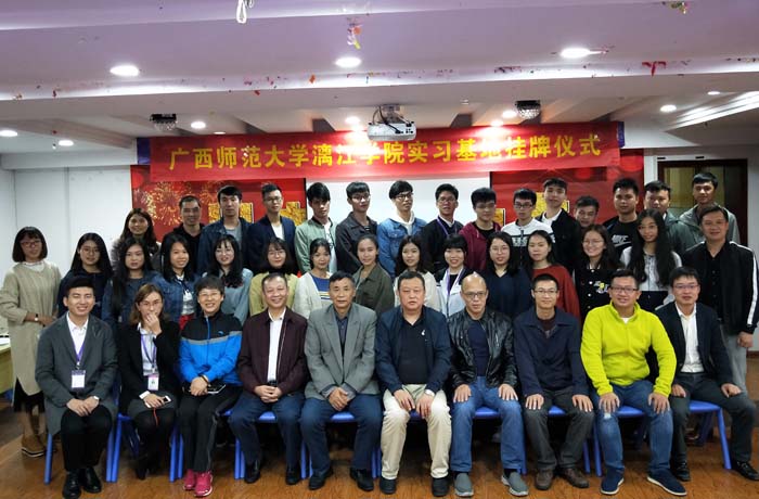 活动最后,在双方领导及师生的见证下,林庆南主任与博学教育总顾问陈吉先生共同为广西师范大学漓江学院教学实践基地成立正式签约并揭牌,把本次活动推向了高潮,为漓江学院与柳州博学教育的深入合作翻开了新的一页。