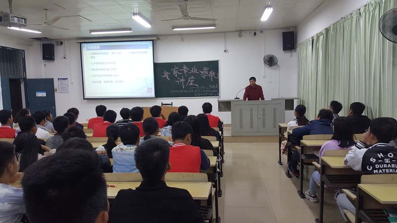 10月17日晚上,理工系在1406教室为计算机类新生开展专业教育讲座,讲座由计算机专业新生李攀与李钰莹主持,首席教授张超英主讲。系主任林庆南到场引导2018级计算机类全体新生认真聆听了讲座;该讲座为计算机类新生尽快适应大学课堂的学习,了解专业特色,规划未来的发展方向取得了良好的成效。