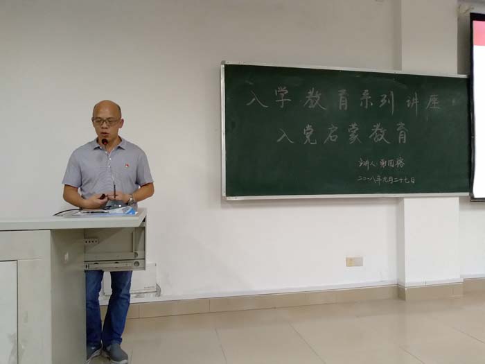 为了让新生更加全面的认识中国共产党,激发新生的政治热情,端正入党动机,积极向党组织靠拢,提高党员质量,9月27日晚上,理工系在1111教室举行了2018级新生入党启蒙教育讲座,讲座由理工系党总支书记谢国榕主讲。