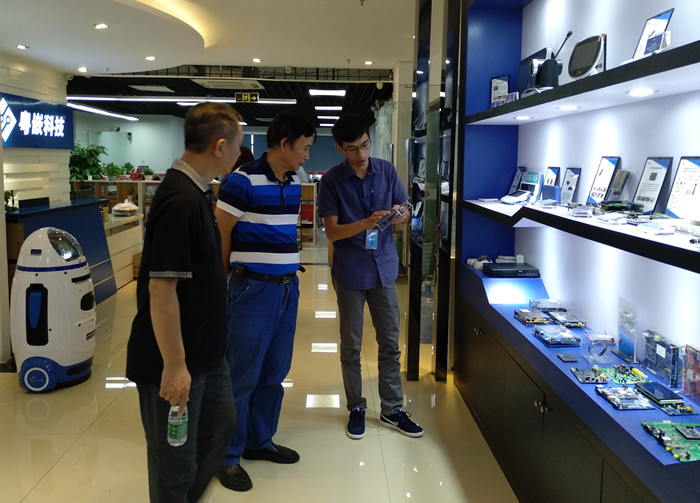 调研组一行还分别参观了粤嵌科技的研发产品和嵌入式培训课堂,并实地考察了员工食堂和实习学生宿舍等后勤设施。