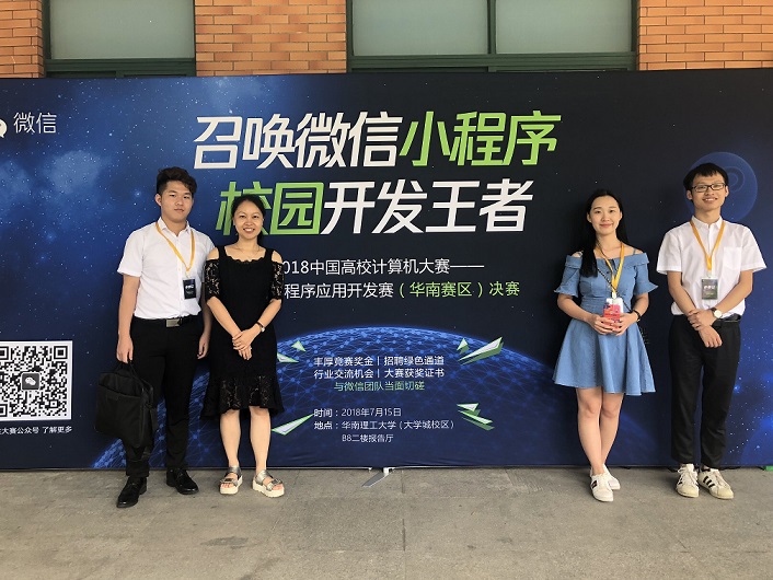 2018年7月15日,我校理工系学生宾凯、高鹏飞、王肖薇作为广西高校3支参赛队伍之一,赴广州华南理工大学参加2018中国高校计算机大赛——微信小程序应用开发赛(华南赛区)决赛,与华南理工大学、深圳大学、华南师范大学、广西大学、桂林电子科技大学等20支队伍展开紧张激烈的角逐,最后成功获得2018中国高校计算机大赛——微信小程序应用开发赛(华南赛区)决赛二等奖。