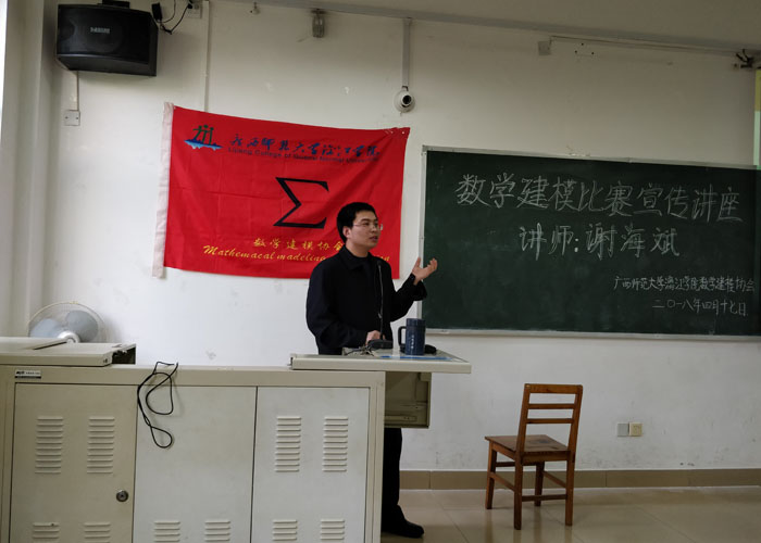 理工系数学建模协会于4月17日下午在1213教室开展了理工系第十一届科技文化月之数学建模竞赛宣传讲座暨2018年全国大学生数学建模竞赛校内选拔动员会。本次讲座由数学建模协会负责老师谢海斌主讲,建模协会会长、全体会干以及各年级数学专业的会员参加了本次活动。