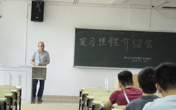 4月12日,理工系在1207教室举行了2015级实习动员暨经验介绍会,会议由数学与应用数学教研室主任李勇刚老师主讲,2015级数学与应用数学全体学生参加,系党总支书记谢国榕、2014级毕业班党员章婉清应邀参加了会议。