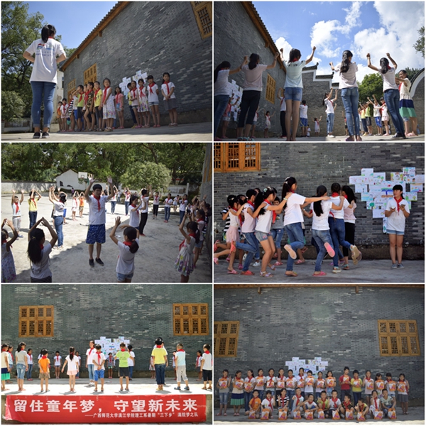 七月,骄阳似火,全国大学生暑期“三下乡”活动也如火如荼地拉开了序幕,广西师范大学漓江学院理工系的同学们在指导老师的带领下,组建了一支“漓院梦之队”(以下简称“梦之队”),于7月11日来到桂林市雁山区草坪乡潜经村开展为期4天的关爱留守儿童实践调研系列活动。