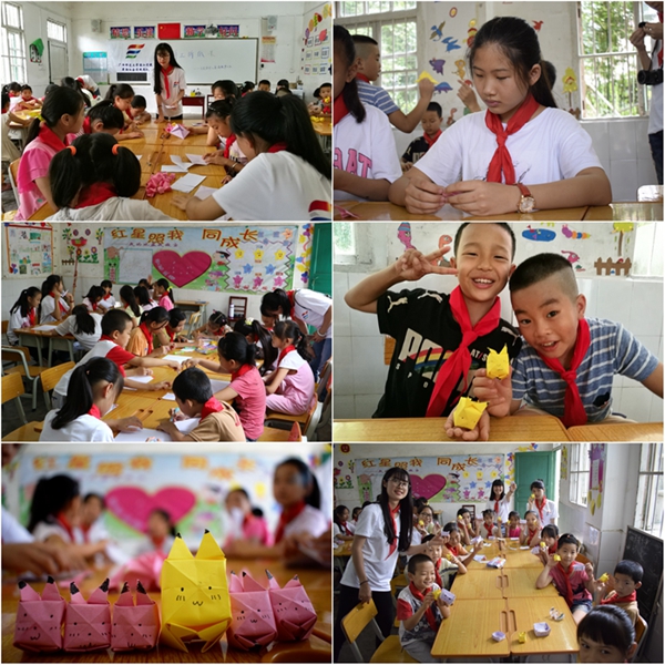 有了第一次接触的良好印象,接下来为期两天的“筑梦行动”——爱心支教活动显得更加顺利了。在潜经村回民小学开展的支教活动中,孩子们口口相传,辅导班从最初的18人,增加到了34人,还有不少孩子随着家长趴在教室窗外悄悄的观看。对于教学设计和辅导内容,“梦之队”在老师的指导下做了认真的培训和精心的准备,所有课程均由学生独立讲授,尽显小小教师风采。对于“国学堂”中的经典词句,“小潘老师”通过抢答竞赛方式,以赛促学,气氛热烈。手语操《感恩的心》,通过手、眼和心的协调,辅以感恩故事,让孩子们外化于操,内化于情,做一个会感恩的人。趣味手工和梦想主题绘画课上,孩子们和“梦之队”队员们一起探寻童年梦,用彩色的纸张叠出可爱的皮卡丘、千纸鹤、花朵等,用多彩的画笔绘出脑海里的奇幻世界,用写着名字和梦想的纸飞机进行飞行比赛,让梦想飞得更高更远……安全礼仪教育课,是“梦之队”为留守儿童贴心打造的假期安全手册,防火,防电,防溺,防骗等,并通过情景模拟和地震演练,加强孩子们的安全意识,并在生活中强调文明礼仪的重要性。