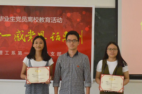 当天,理工系第一学生党支部还表彰了支部年度“优秀党建信息员”,并为支部刚结束的“习语”书签设计大赛举行了颁奖仪式。
