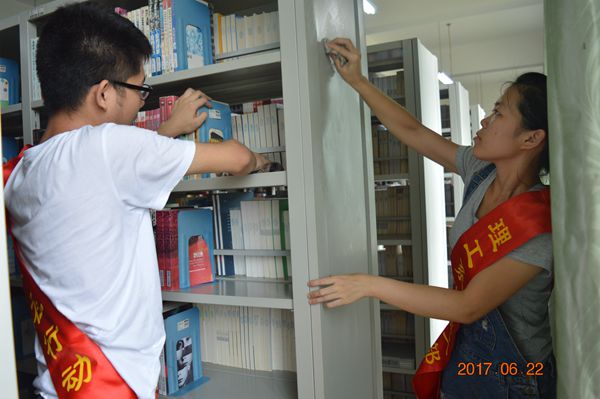 党课结束后,理工系第一学生党支部组织党员到图书馆开展志愿服务,以实际行动感恩母校。