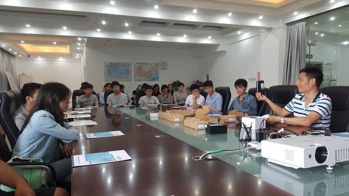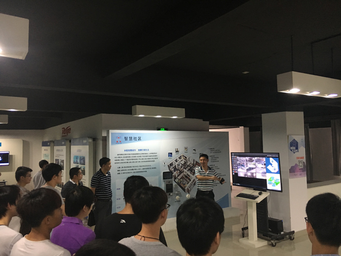 在本次活动中,瀚特公司的技术总监首先就企业的发展历史、文化、业务现状等向到访的同学们作了详细的介绍,然后结合同学们的专业特点着重讲解了智慧邦及智慧家两套物联网整体解决方案,最后还亲自带领同学们参观了公司的产品展示体验区,引起了大家的极大兴趣。