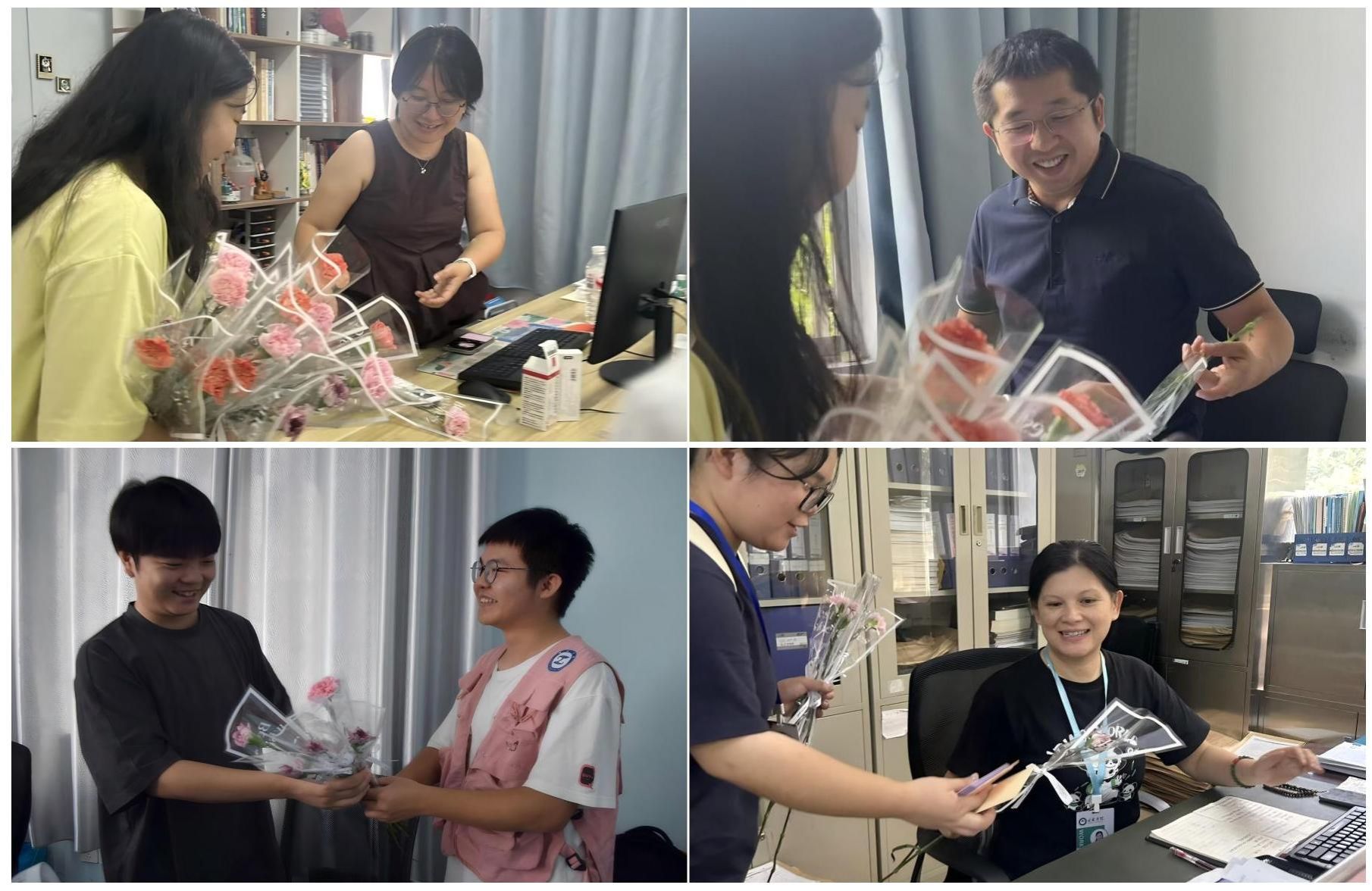 9月10日教师节当天,学院团总支学生会干部化身“送福使者”,手捧新鲜鲜花、怀揣定制贺卡,逐一向老师们送上节日惊喜。接过花束与贺卡时,老师们的笑容温暖动人,现场温馨氛围感染着每一个人。