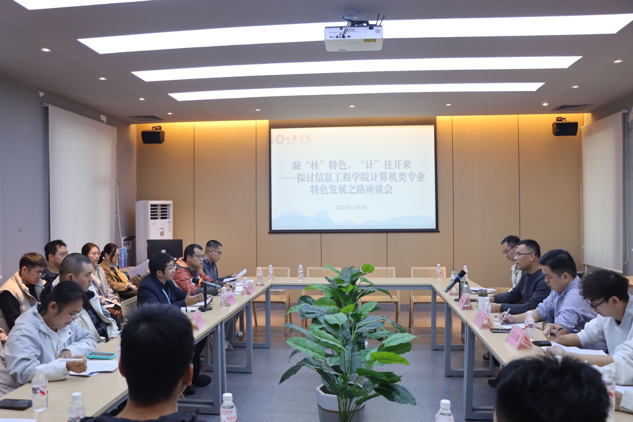 11月5日,信息工程学院/软件与信息技术产业学院举办“凝'桂'特色, '计'往开来"计算机类专业特色发展之路专题座谈会。会议特邀桂林电子科技大学计算机与信息安全学院院长莅临交流,东软教育科技集团华南区总经理率团队参与研讨。信息工程学院副院长、教研室主任、相关专业负责人及骨干教师共同参会。