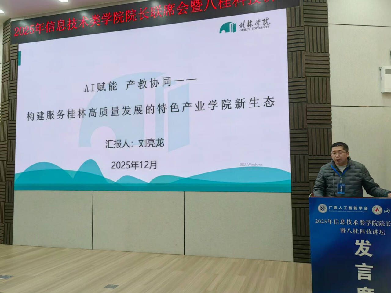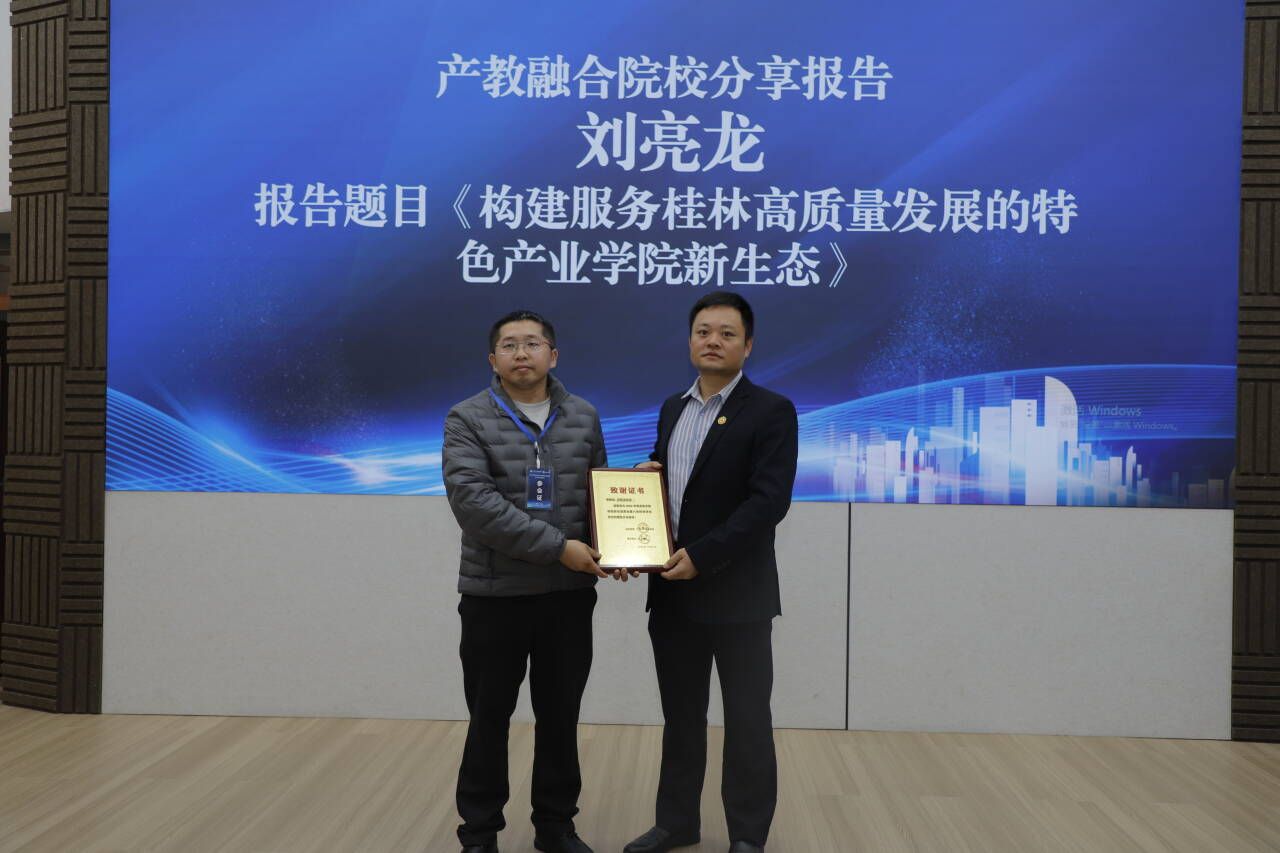 信息工程学院副院长(主持工作)代表学院参会,并在大会专题报告环节作题为《构建服务桂林高质量发展的特色产业学院新生态》的发言,系统介绍了学院近年来深化产教融合、推进校企协同育人的创新实践。