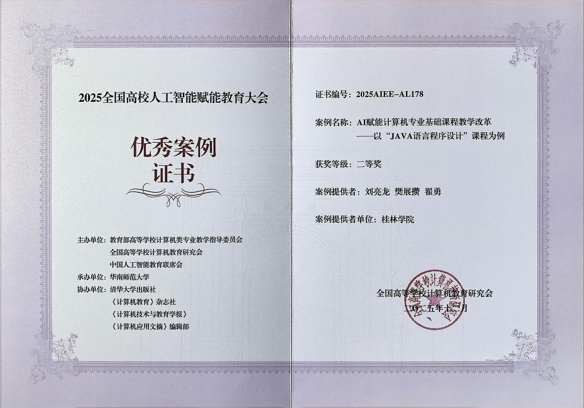 2025年12月20日,2025全国高校人工智能赋能教育大会在广州圆满举行。我校教学案例《AI赋能计算机专业基础课程教学改革——以“JAVA语言程序设计”课程为例》获优秀案例二等奖,同时学院负责人以“构建高质量发展的特色产业学院新生态”为题做大会主题报告,分享了学校在应用型人才培养与教育教学改革方面的经验。