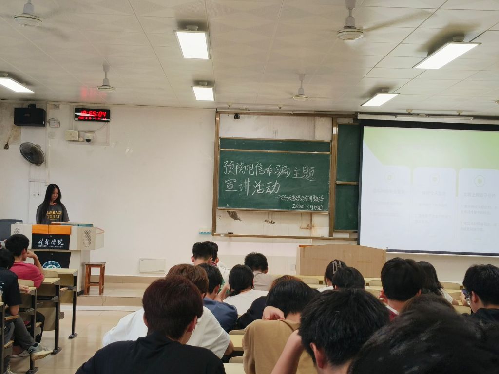 为增强学生网络安全意识,筑牢反诈思想防线,6月15日,信息工程学院学生党支部在至善楼1411教室面向2024级数学与应用数学专业学生开展反诈知识宣讲活动。