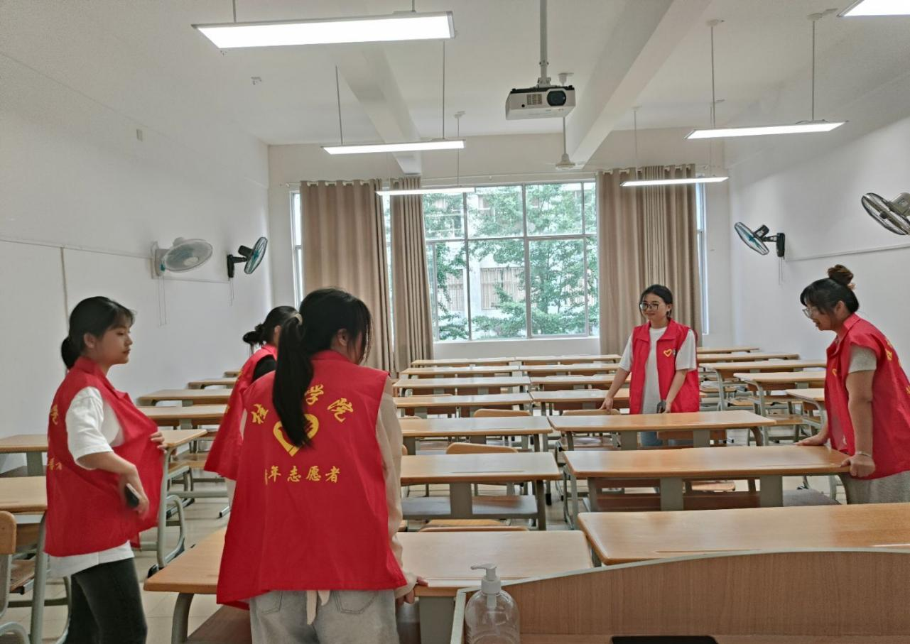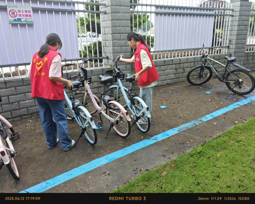 下午五点,志愿者们于大阶梯集合。简短动员分工后,三支队伍迅速行动。教室清洁组深入教学楼,擦拭黑板、规整桌椅、清扫地面,为师生打造整洁学习环境;道路清扫组手持工具,在校园主干道和绿化带间穿梭,烈日下仍细致清扫落叶、捡拾垃圾,及时清运;车辆整理组奔赴自行车停放区,将歪斜车辆扶正、统一朝向排列,让停车区秩序井然。历经四小时奋战,校园面貌焕然一新。教室窗明几净,道路纤尘不染,自行车整齐划一。