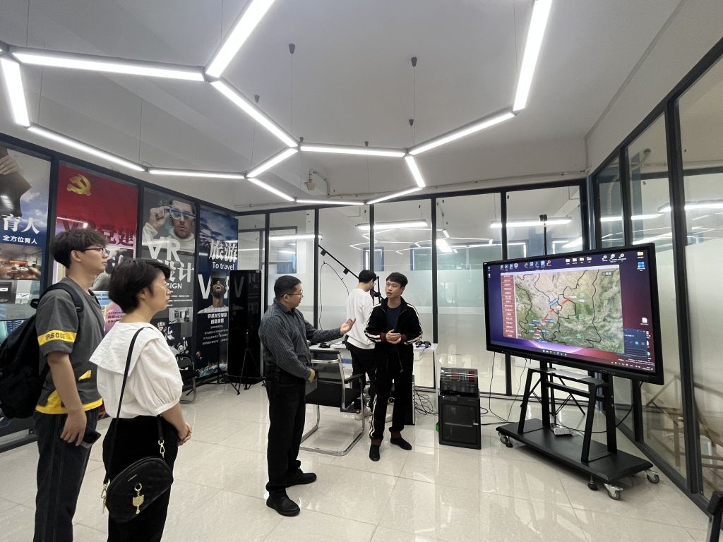 在公司总经理杨浩的陪同下,学院一行参观了企业展厅,深入了解蓝港科技在VR技术领域的创新成果,以及这些技术在旅游、教育等行业的实际应用场景。随后的交流会上,校企双方围绕VR产业人才需求、实习就业对接、产学研合作等议题展开热烈探讨。企业明确提出,行业亟需兼具技术实力与艺术素养的复合型人才;学院则详细介绍了专业培养方案、实践教学体系以及学生在各类项目中的实践成果。